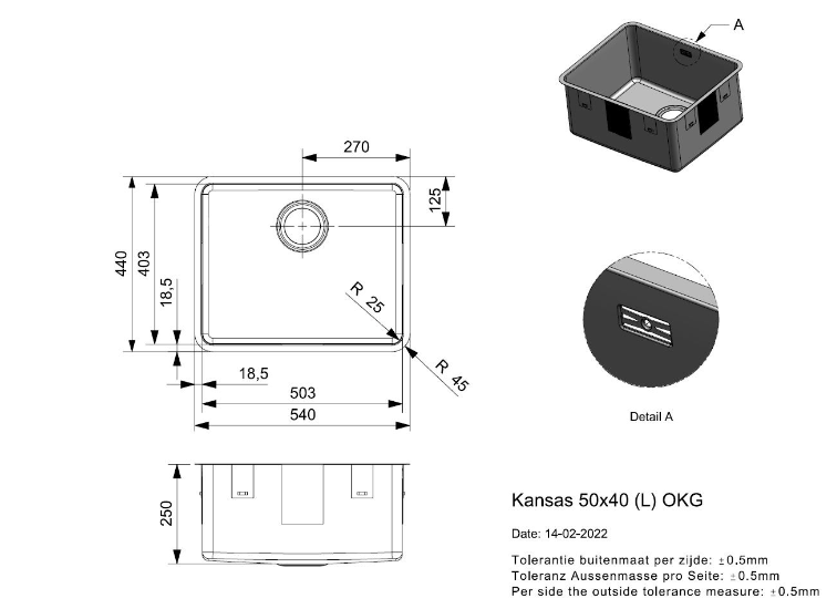 Totale afmeting: 540 x 440 x 250 mm