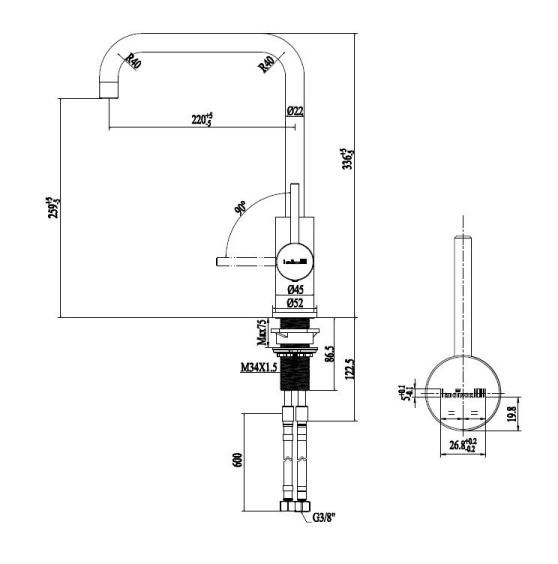 • Deze populaire kraan heeft een vierkante hals en is 336 mm hoog.