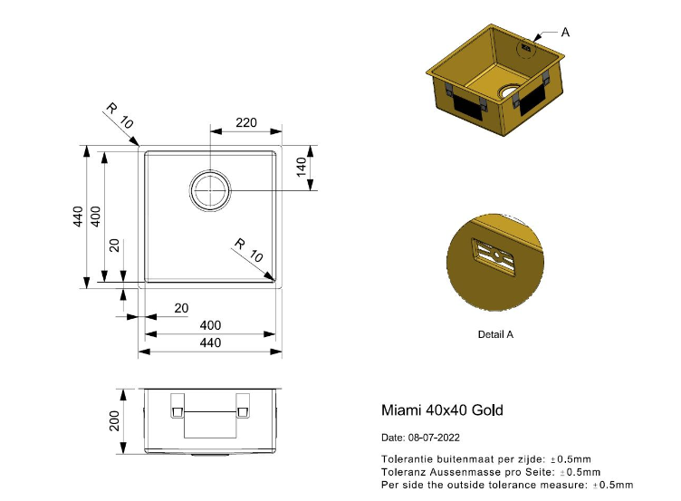 Totale afmeting: 440 x 440 x 200 mm