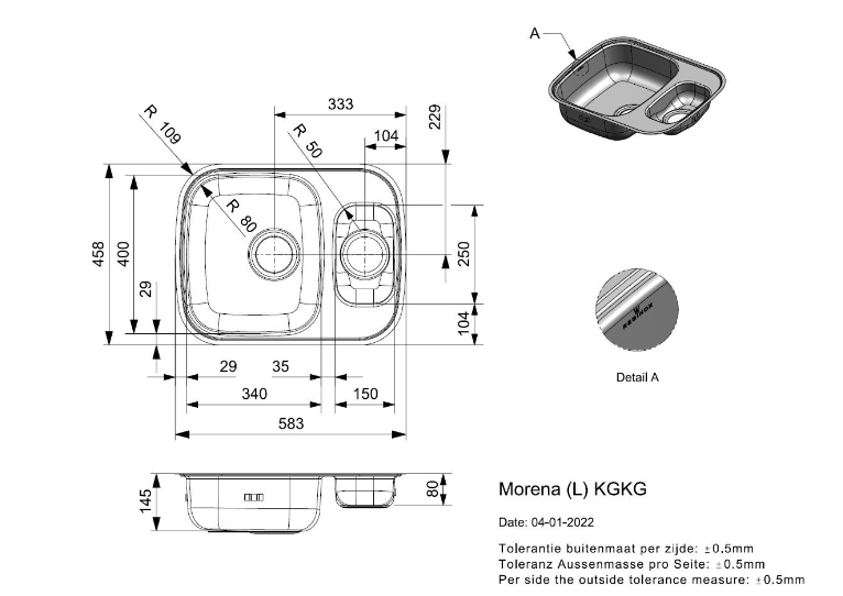 Totale afmeting: 583 x 458 x 145 mm