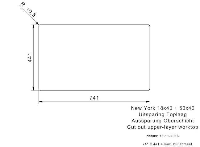 Totale afmeting: 740 x 440 x 180 mm