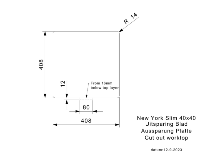 Binnenafmeting: 403 x 403 x 180 mm