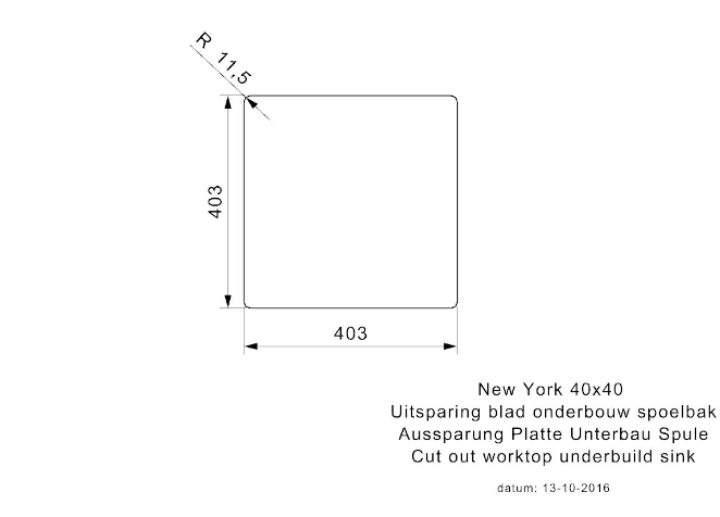 Binnenmaat: 403 x 403 x 180 mm