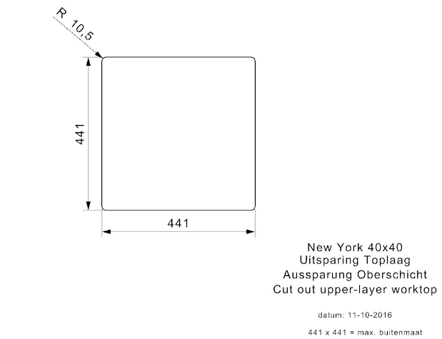Totale afmeting: 440 x 440 x 180 mm