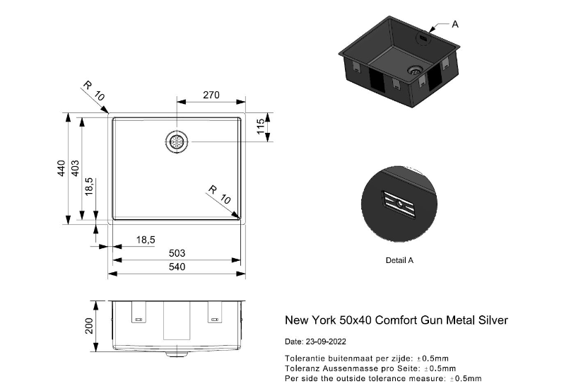 Totale afmeting: 540 x 440 x 200 mm