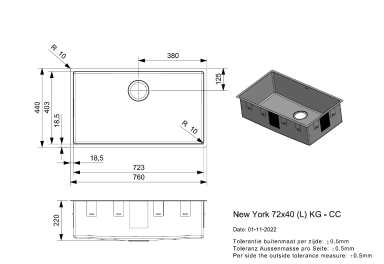 Totale afmeting: 760 x 440 x 220 mm