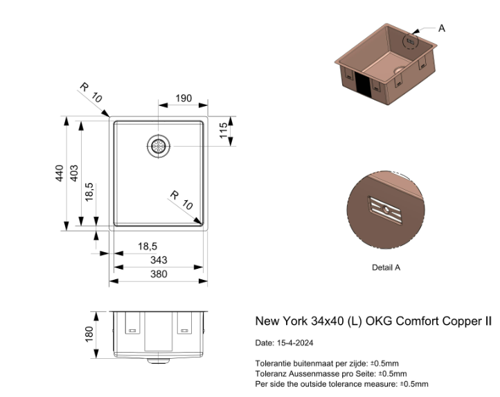 • in- en uitwendige hoekradius 10 mm