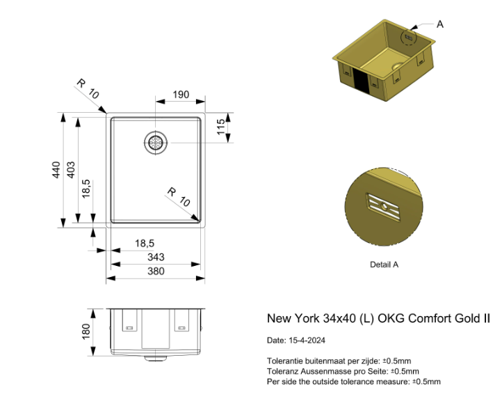 RVS spoelbak kleur afwerking in PVD coating.