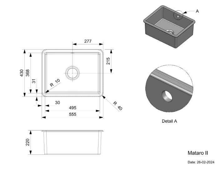 Afmeting spoelbak: 495 x 430 x 220 mm