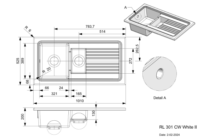 Afmeting spoelbak: 389 x 321 mm / 165 x 272 mm
