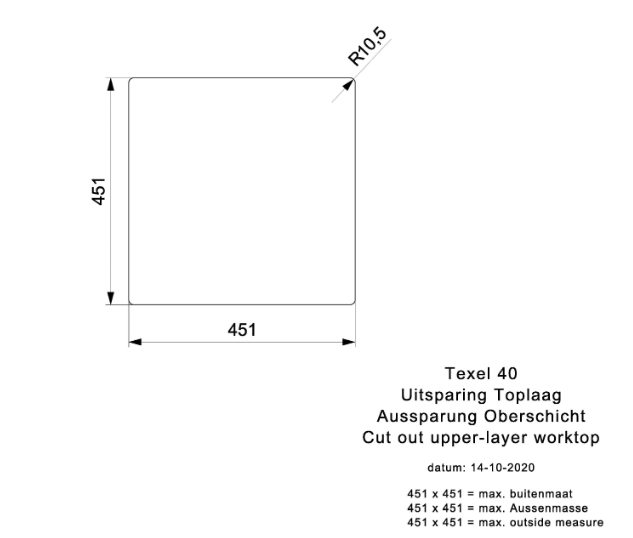 Totale afmeting: 450 x 450 x 216 mm