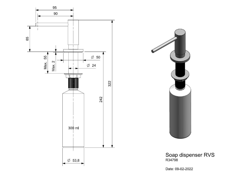 Home Accessoires Reginox Zeepdispenser R34798 Zeepdispenser RVS