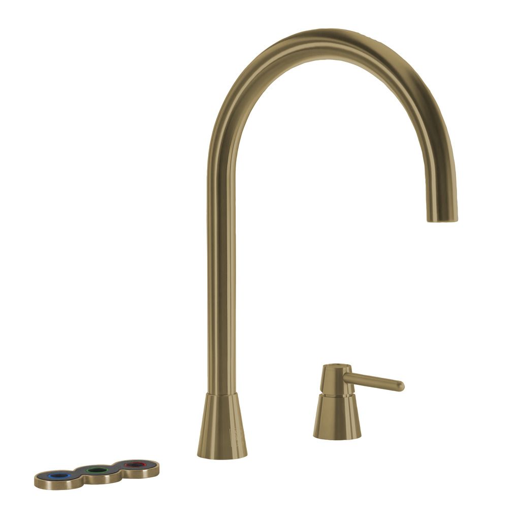 De Cone Counter 5 in 1 is een kraan exclusief ontworpen door Osiris Hertman, kenmerkend voor het design zijn de conische details en de elektronische bediening op het keukenblad.