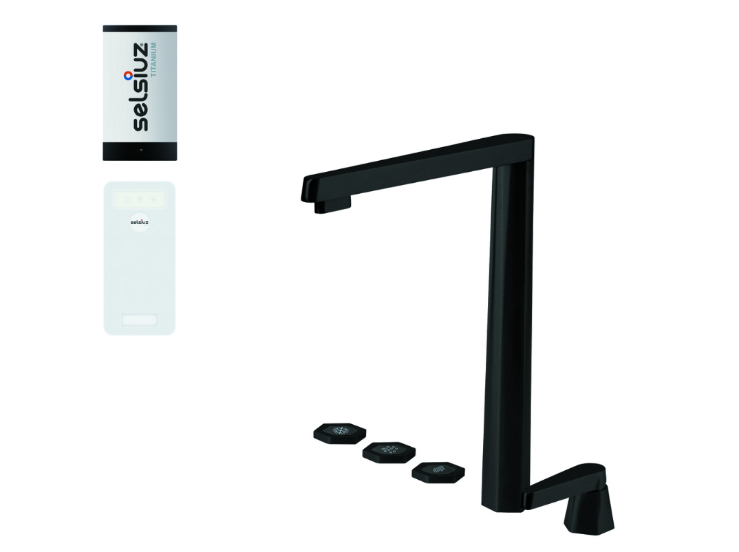 Selsiuz By Osiris Design Hexagon Sturdy Black 350701 Met Single Boiler Van Titanium 5 in 1 Cool En Kokend Water Keukenkraan Zwart