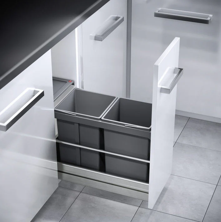 Dit systeem is ideaal voor wie de keukenlade wil upgraden met een efficiënte en onopvallende afvaloplossing. Dankzij het compacte ontwerp en de discrete plaatsing blijft je keuken georganiseerd en hygiënisch – zonder in te leveren op stijl.