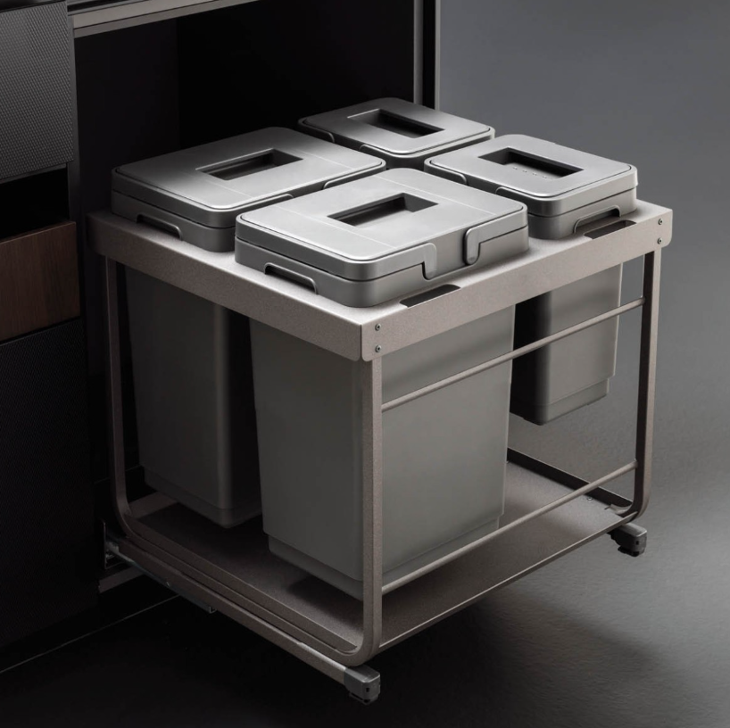 Afvalsysteem voor montage op de kastbodem en de mogelijkheid voor aan het front te monteren.