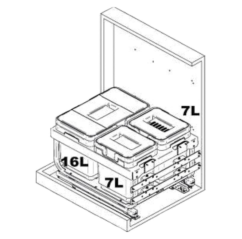 – Inhoud 30 liter ( 16 + 2 x 7 ).