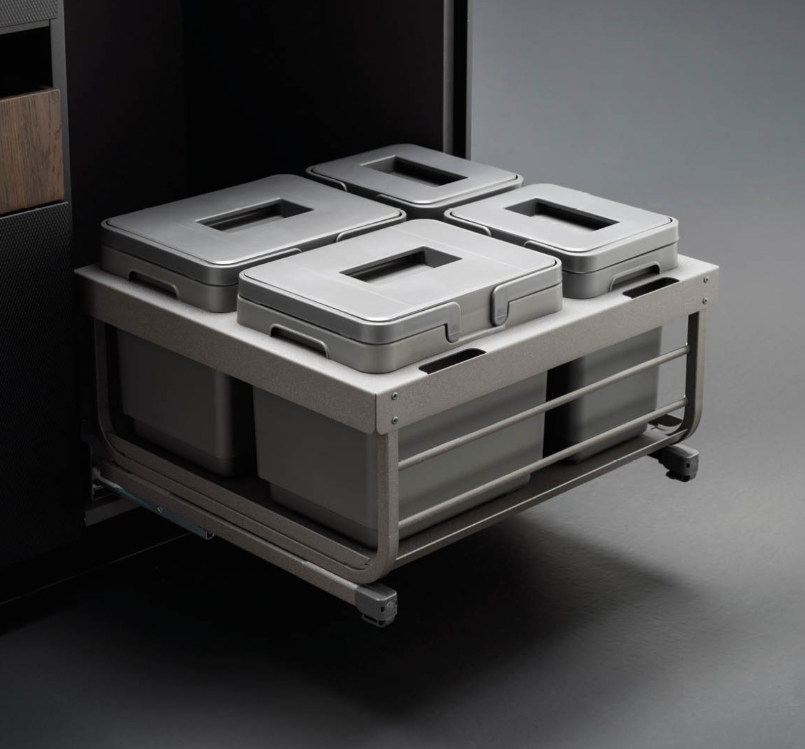 Afvalsysteem voor montage op de kastbodem en de mogelijkheid voor aan het front te monteren.