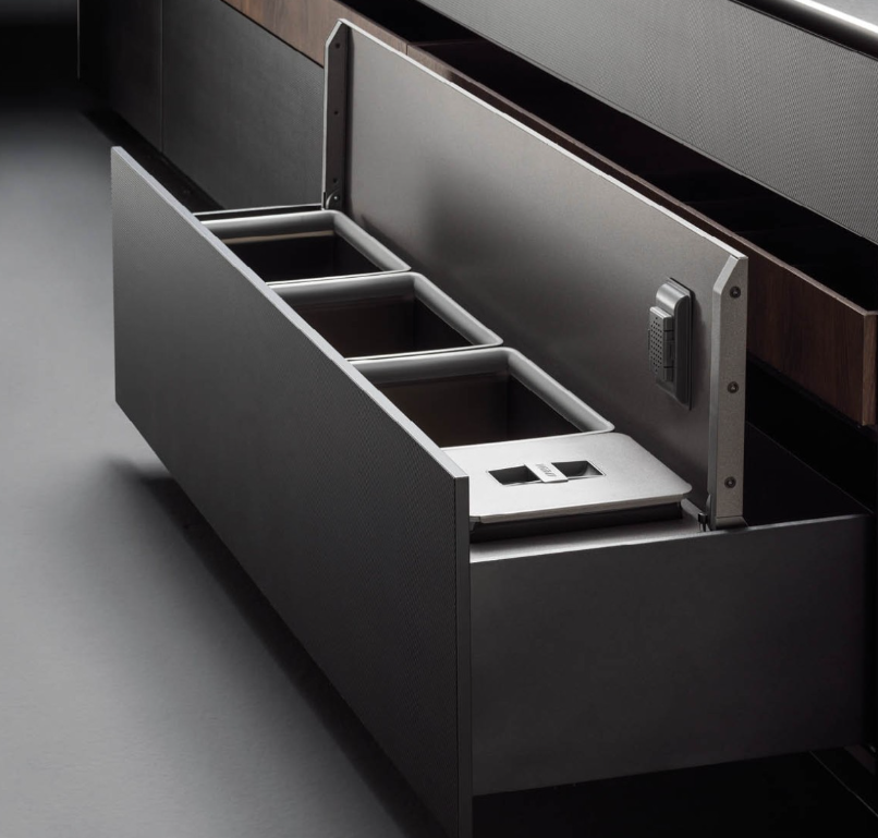Afvalsysteem voor montage in ladekast op de kastbodem en de zijwanden.