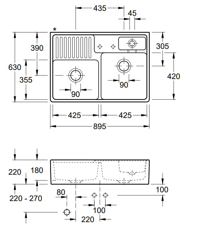 Houd er rekening mee dat de breedte van de onderkast moet minimaal 90 cm zijn