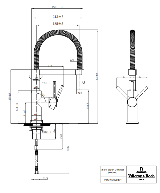2 straalsoorten: laminaire straal (gelijkmatige, kristalheldere waterstraal), douchestraal (krachtige straal verrijkt met lucht voor het wassen van groente en fruit)